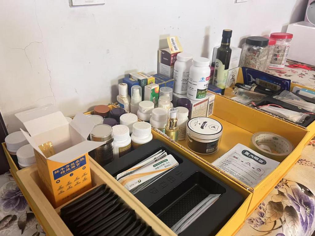 △桌上摆放整齐的药品,摄 / 黄康睿