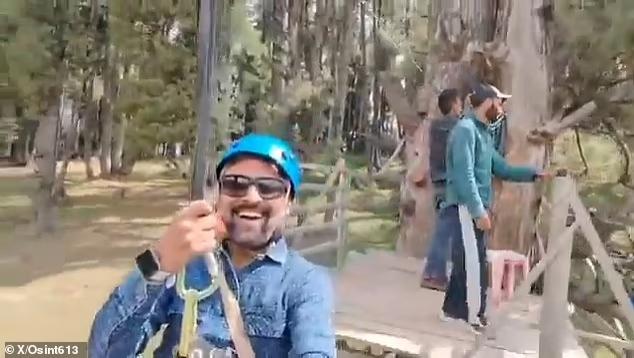 印度一游客在山谷上空开心滑索,下方却正发生恐怖袭击致26人死亡