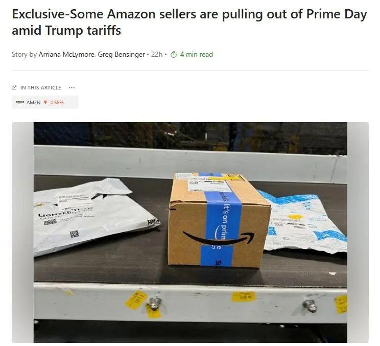 据央视新闻消息,路透 . 社近日刊文说,受美国关税政策影响,部分卖家选择退出美国电商巨头亚马逊会员日(Prime Day)全球购物促销活动。