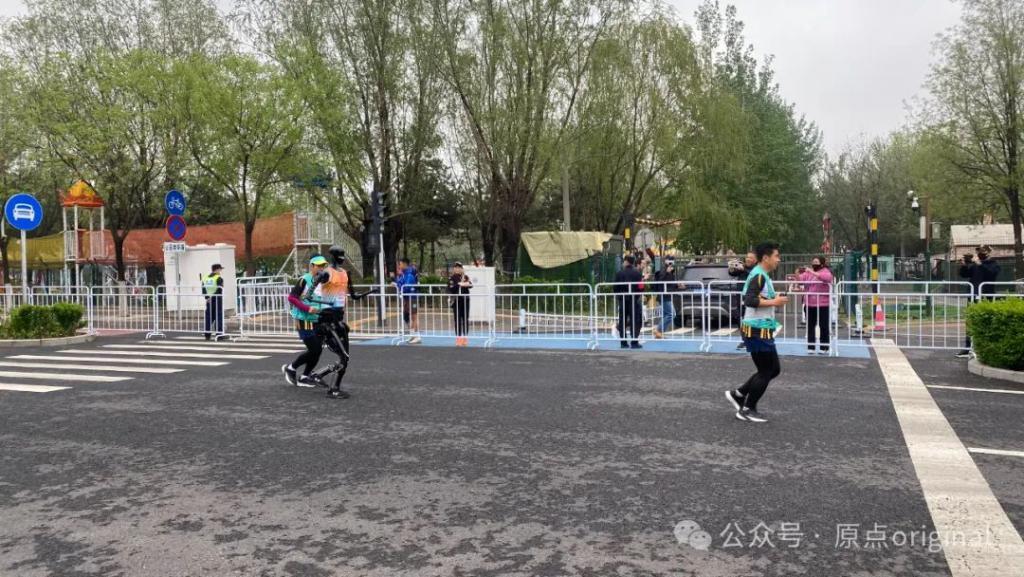 我们这个临时组建的队伍,不只是跟机器人磨合,人跟人也得磨合。我和机器人保持距离,也要靠团队配合,太近或者太远,后方的护跑员都会提醒。距离太近的时候,我能听到机器人 " 咚咚咚 " 的脚步声,还有关节动起来的声音。听不清后面声音的时候,我得时刻问他们我跑得怎么样,得到 " 可以 "" 保持住 " 的回复就行。