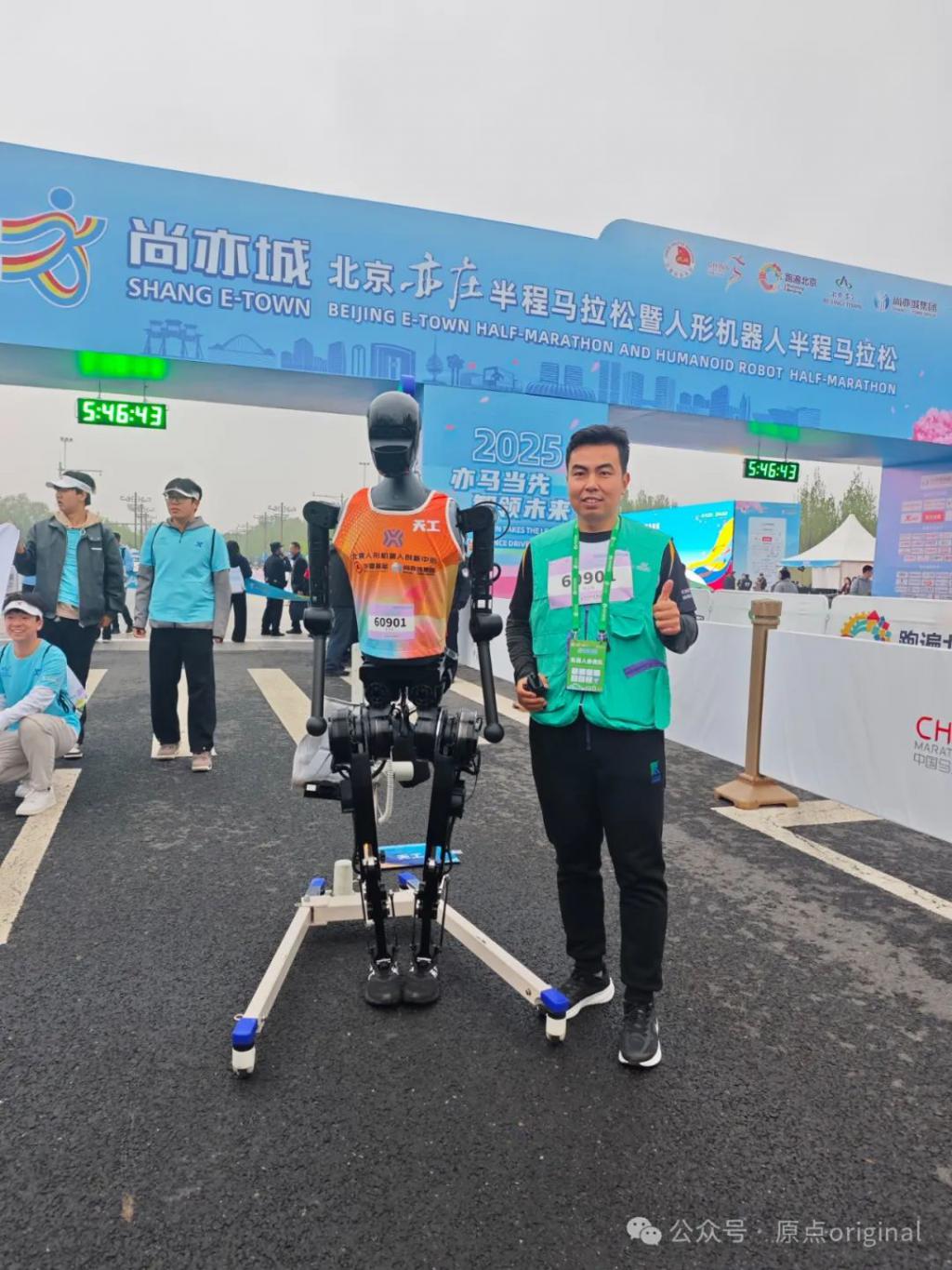 我是做办公设备维修工作的,时间相对灵活,才能接下这个领跑的任务。机器人既不在我以往的工作范围内,也不在我的兴趣领域。但这次比赛结束之后,我在想,人形机器人是不是可以真的进入马拉松领域。马拉松有关门兔,以后说不定会有机器人 " 兔子 "。现在是我领着机器人跑,未来可能是机器人为人类领跑。