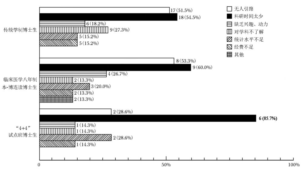 "4+4" 试点班学生认为科研受阻主要原因是时间太少 [ 6 ]