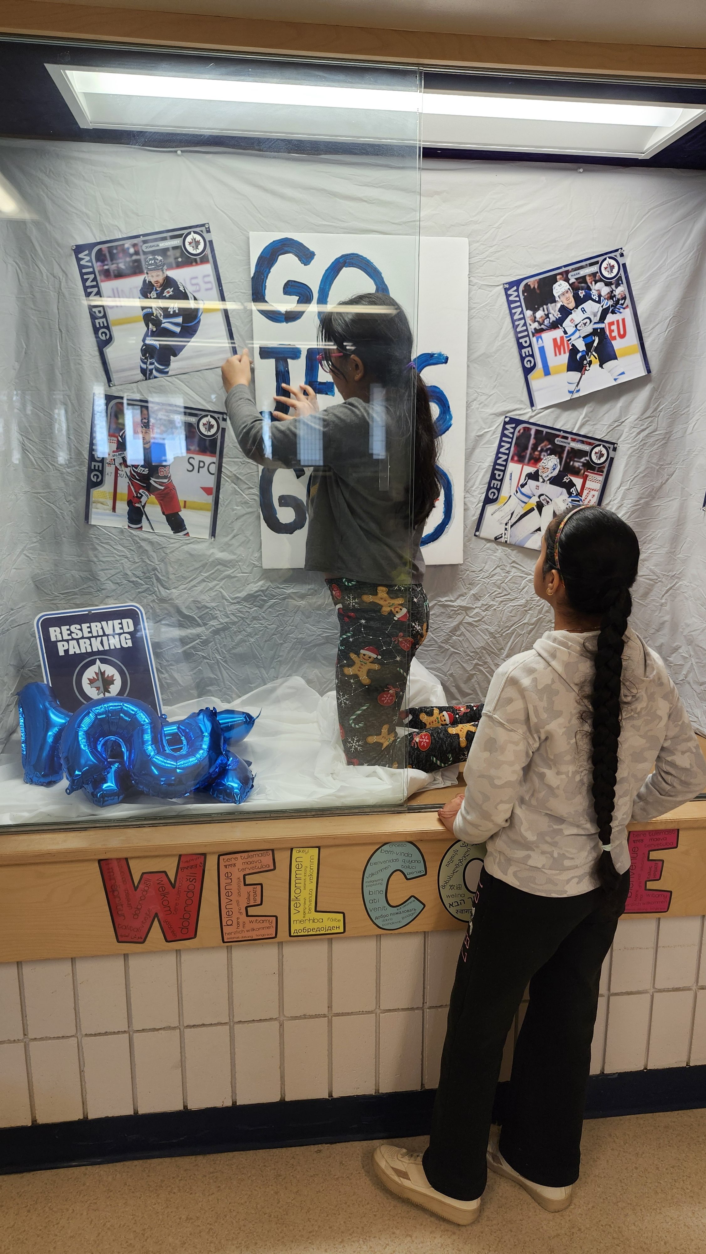 在温尼伯枫树幼儿园八年级的学校里,墙上和大厅里贴满了Go Jets的标志、白板毛巾、球员海报和励志语录。