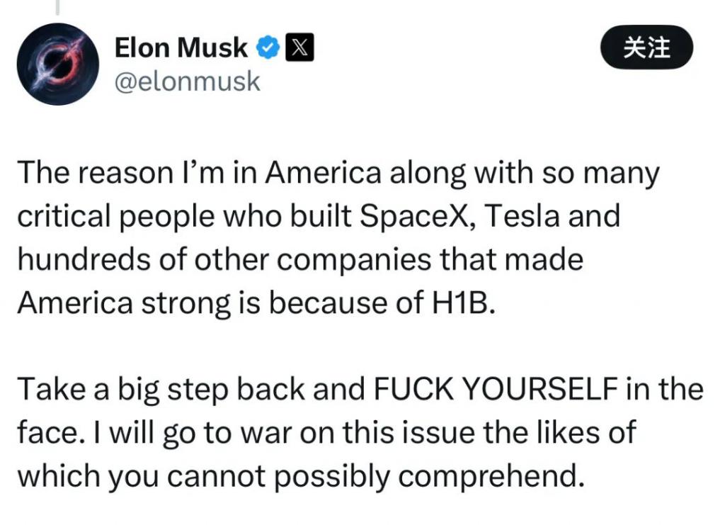最初马斯克高调支持 H-1B 签证项目,已和传统的保守派起了龃龉。马斯克坚持认为,这一项目对科技行业吸引全球人才至关重要。