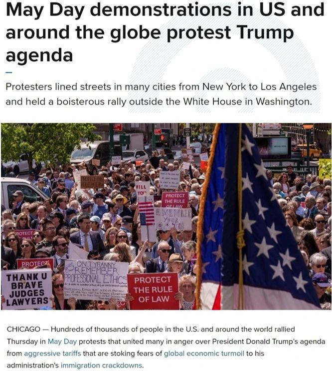 抗议民众表示,美国政府推出的所谓 " 对等关税 " 政策实施仅一个月,便给美国社会带来巨大冲击。