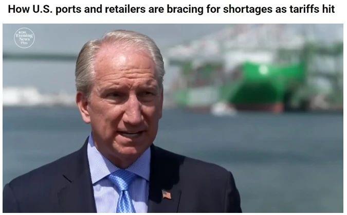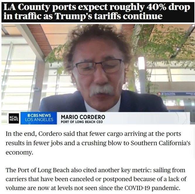 塞罗卡:" 未来两周内,我们的进口业务将下降大约三分之一,随后的一周降幅可能高达 40%。大多数美国进口商表示,他们已经停止从中国发货,因为他们根本无法接受商品成本翻两倍半的局面。"