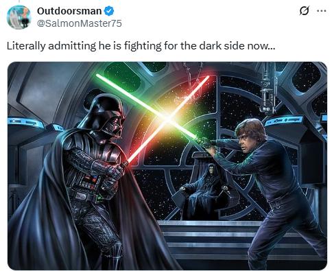 帖文翻译:从字面上承认他正在为黑暗势力而战 ……