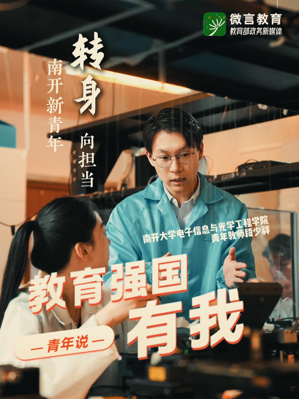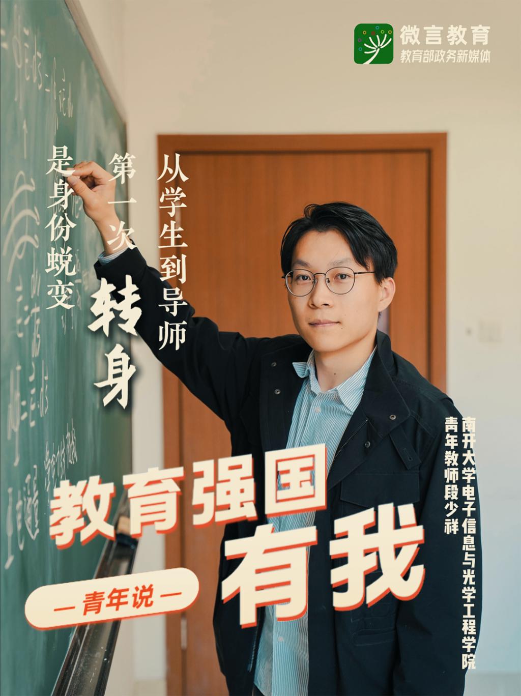 习近平总书记强调,全面推进强国建设、民族复兴伟业,正是年轻一代展示才华、大显身手的好时候。教育强国建设,青年何为?五四青年节之际,教育部政务新媒体启动" 教育强国,有我!"网络主题宣传活动,推出 " 青年说(奋进篇)" 系列,展现青年师生以青春之我、奋斗之我投身教育强国建设的生动实践。今天,跟教育小微通过 1 个微视频和 1 组海报,来看南开大学新青年用三次 " 转身 " 写下的青春答案——