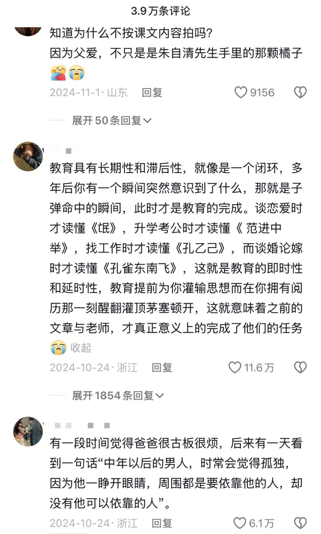 一石激起千层浪,目前该视频抖音单平台已经近200万点赞,评论区3.9万条留言验证着语文穿透人心的魅力。「子弹命中的瞬间,才是教育的完成。」这也和@来看苏吧账号简介「初读不知书中意,再读已是书中人」达成某种契合。