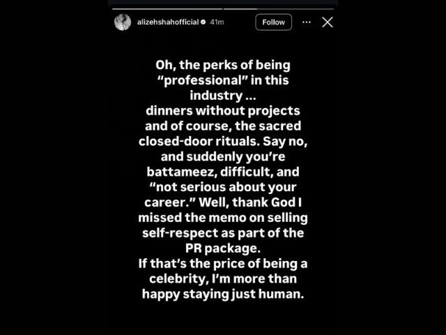 在最近的一个Instagram故事中,阿里泽·沙阿似乎批评了其他演员利用关系或“parchi”和好处来获得工作。