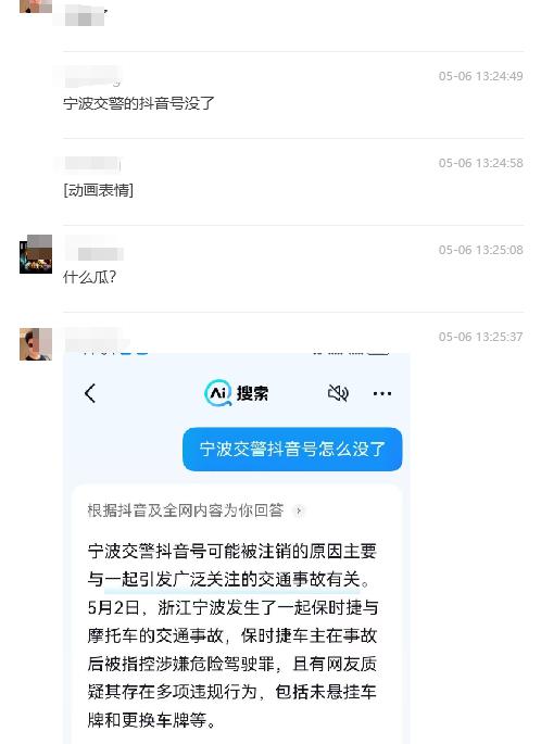 潇湘晨报记者注意到,一些 AI 搜索软件,对于宁波交警抖音号注销的原因,给出的答案为 " 主要与一起引发广泛关注的交通事故有关。"