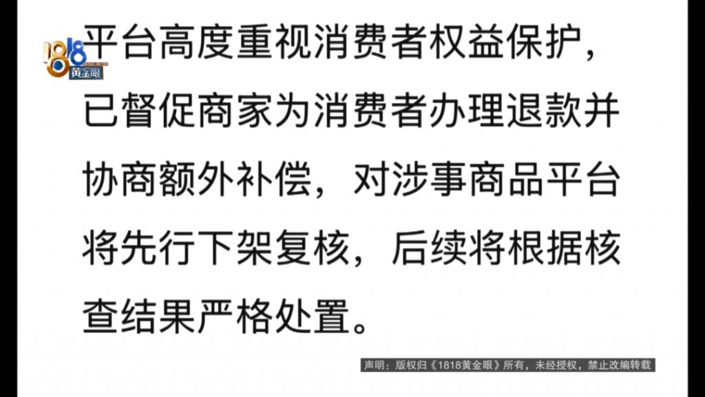 记者把情况反映给了平台,晚些时候平台方面回复,叶奶奶的运费平台已经退回。对渉事商品平台将先行下架复核,后续将根据核查结果严格处理。