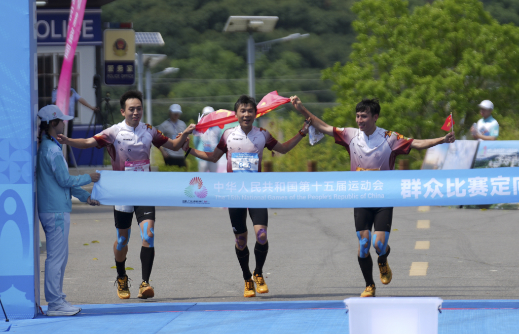 第十五届全国运动会群众赛事活动定向接力赛决赛8日在广东省茂名市高州根子镇举行,广东队以1小时43分19秒夺得男子定向接力赛冠军,摘得十五运会群众赛事首金。