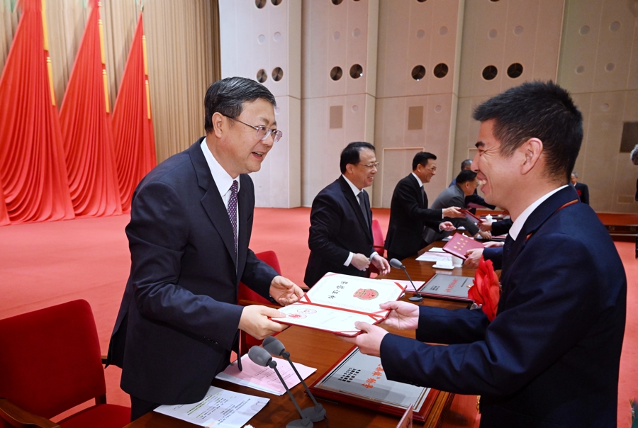 市领导向全国劳动模范和先进工作者代表,上海市劳动模范、先进工作者和模范集体代表颁发荣誉证书和奖章奖牌,代表市委、市人大常委会、市政府、市政协,向为党的工运事业作出卓越贡献的革命先烈和老一辈工会领导者致以崇高敬意,向全市广大职工、各级工会组织和工会工作者致以诚挚问候,向受到表彰的劳动模范、先进工作者表示热烈祝贺。