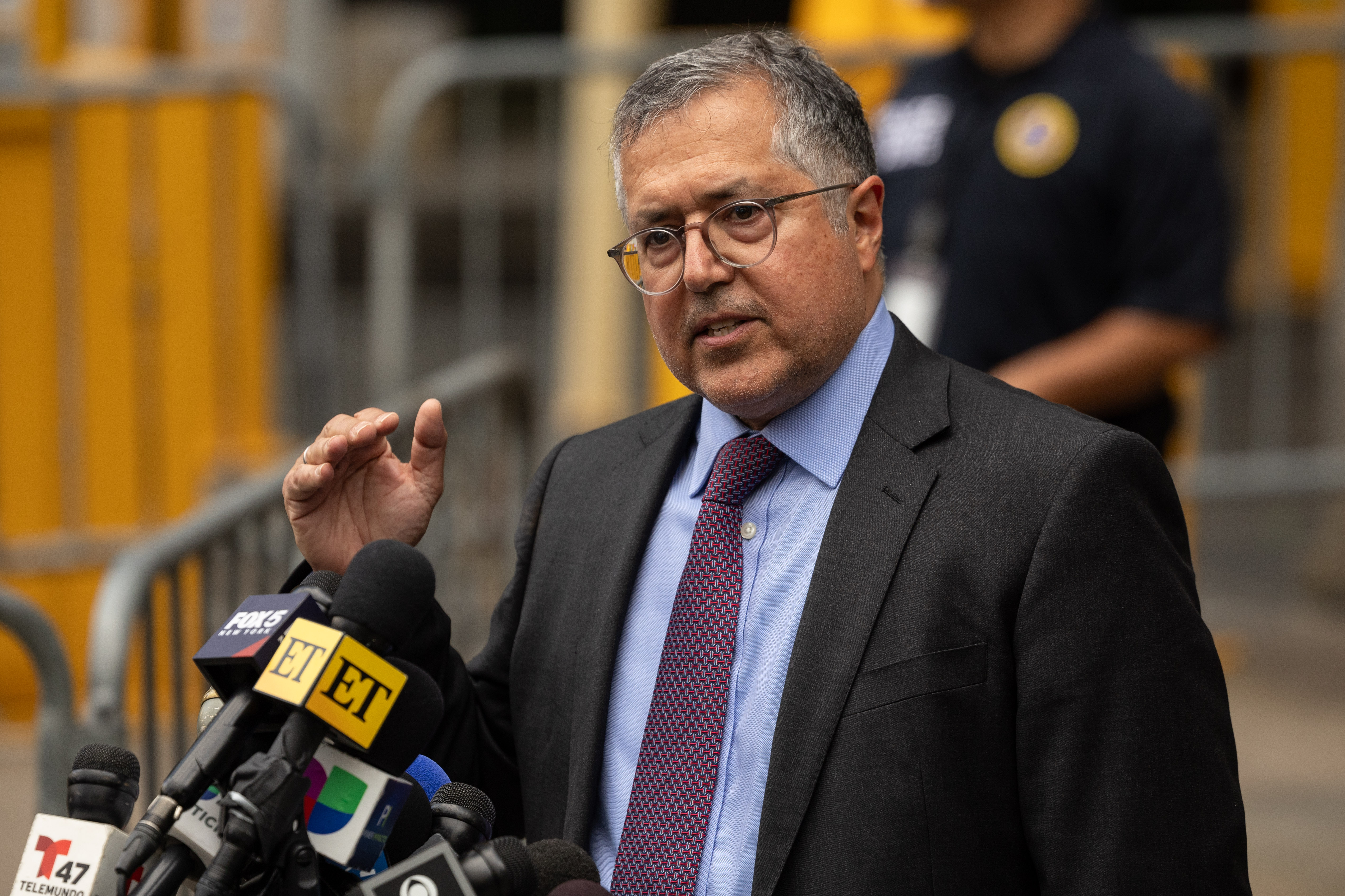 2024年9月17日,星期二,美国纽约,“吹牛老爹”肖恩·库姆斯的律师马克·阿格尼菲洛在法庭外接受媒体采访。Yuki Iwamura/Bloomberg通过Getty Images