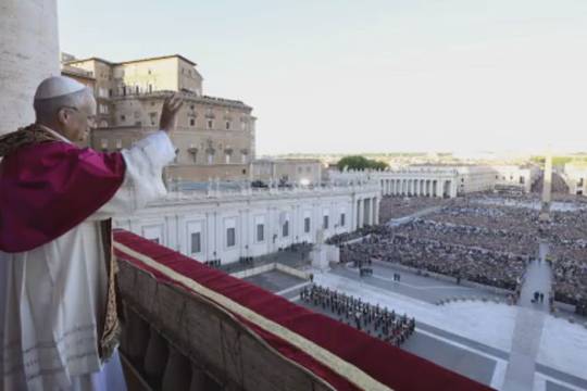 教皇利奥十四首次亮相时的画面和声音