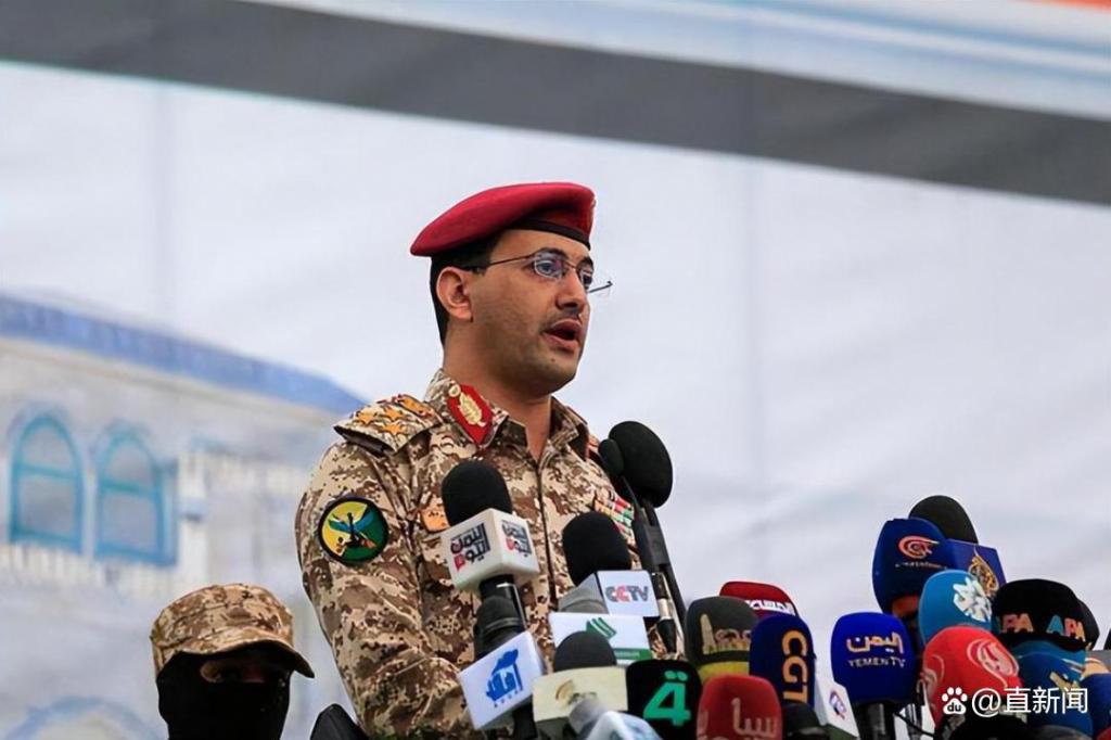 今年 5 月,也门胡塞武装发言人叶海亚 · 萨雷亚(上右二)在首都萨那发表讲话。图源:新华社