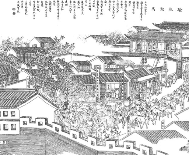 《点石斋画报》的“验收驼马”图描绘了北京街头的骆驼