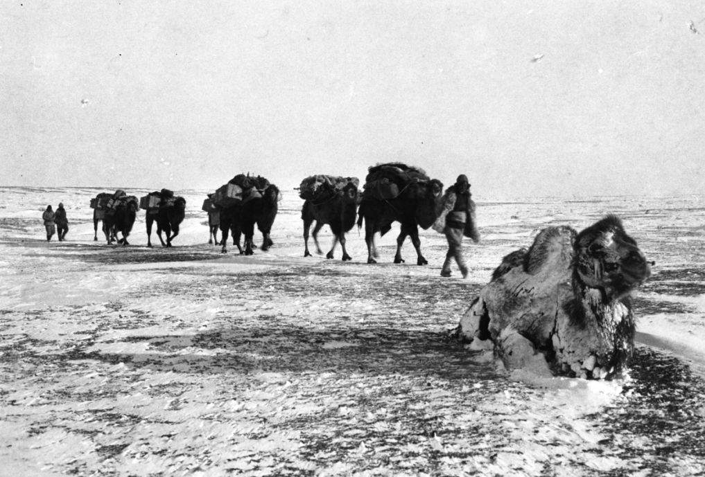 拉铁摩尔在1926—1927年走了一场中国边疆之旅,他在前半程(从内蒙古呼和浩特到新疆奇台)走的是商道,因此这段旅行有了田野调查的性质。骆驼不仅是他的交通工具,亦是他关注的商队贸易的重要组成部分,因而在《从塞北到西域》中有大量的描写。