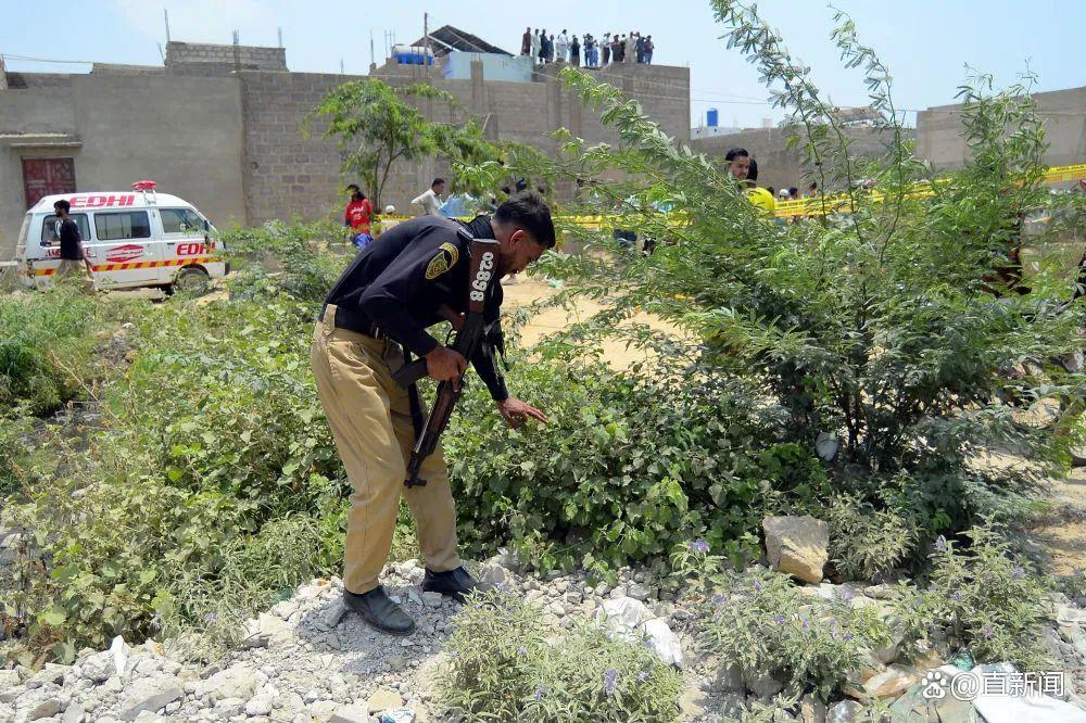 5 月 8 日,在巴基斯坦卡拉奇,安全人员检查印度无人机袭击现场附近区域。