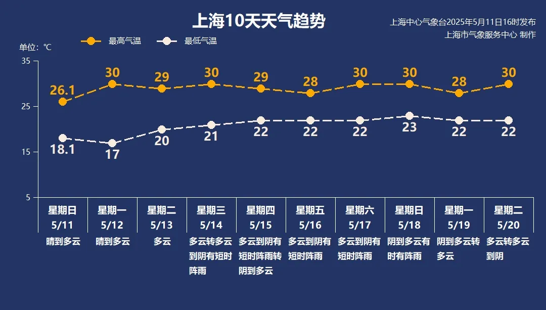 上海下周最高气温在30℃附近徘徊,夏天越来越近