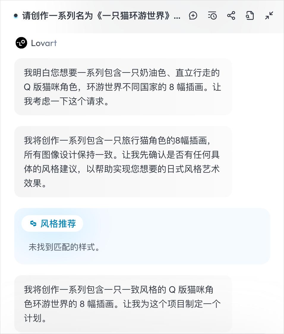 不过有时候,匹配风格这一步,也有可能会被Lovart放在执行计划里,不过概率比较小。
