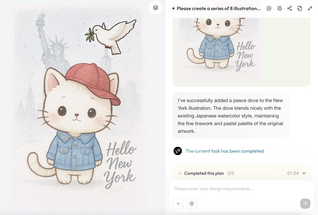 但是,在Agent的加持下,你现在跟Lovart说我要一张图,它给你的是产品。