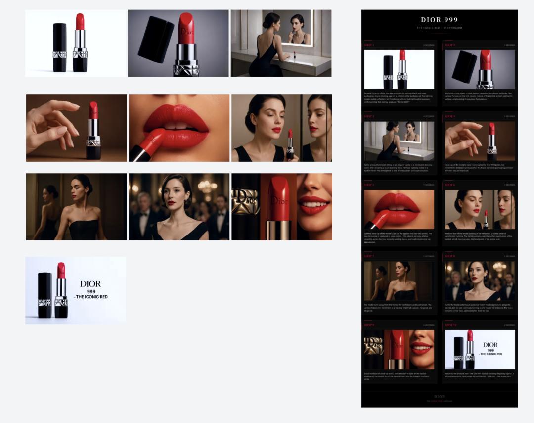 我上传了一张高品质的Dior999的口红产品图,请基于这张图的质感和品牌定位,帮我生成一支专业感极强的Dior999品牌广告片段,时长控制在30秒以内。