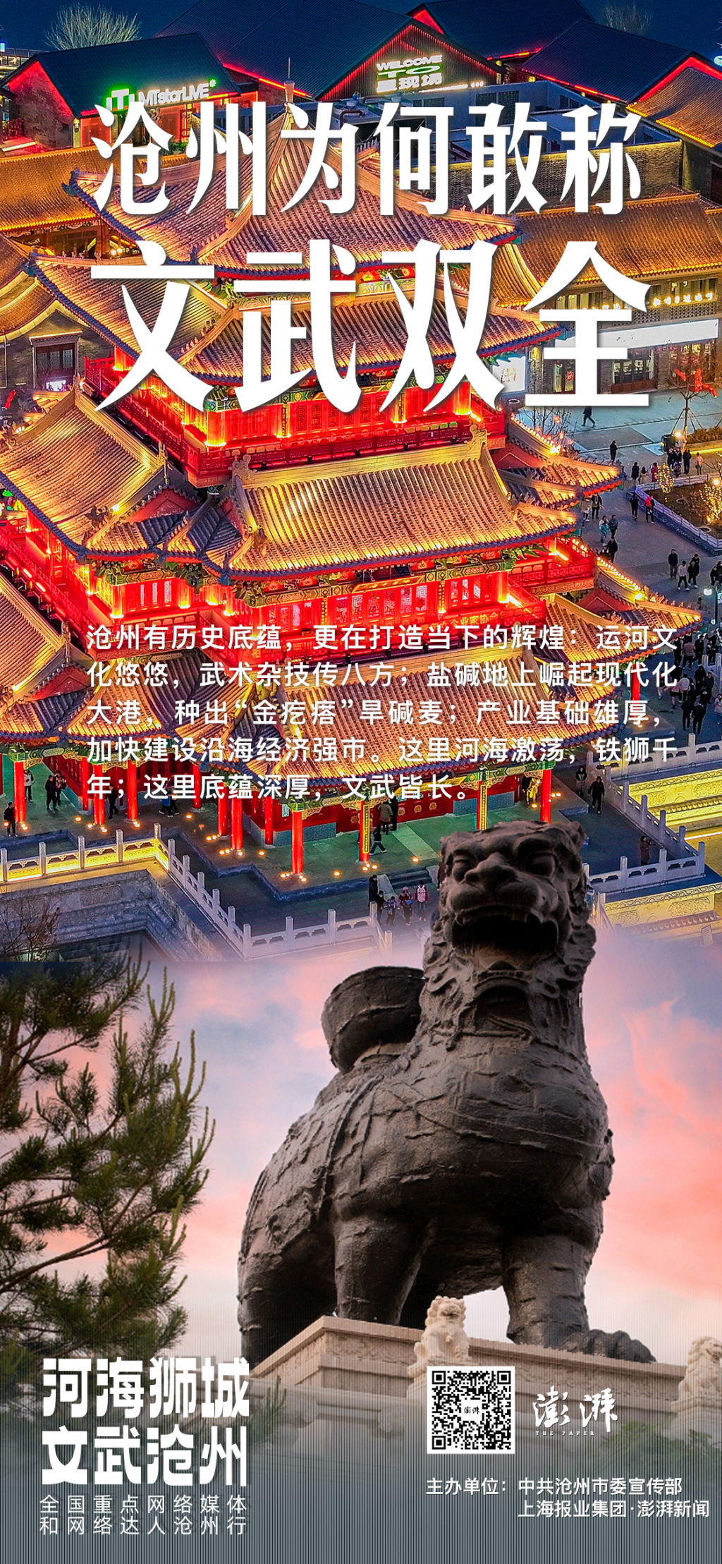 沧州有历史底蕴,更在打造当下的发展辉煌。“盐碱荒滩”上崛起综合性现代化大港,“碱嘎巴”种出“金疙瘩”旱碱麦。这里河海激荡,铁狮千年;这里底蕴深厚,文武皆长。