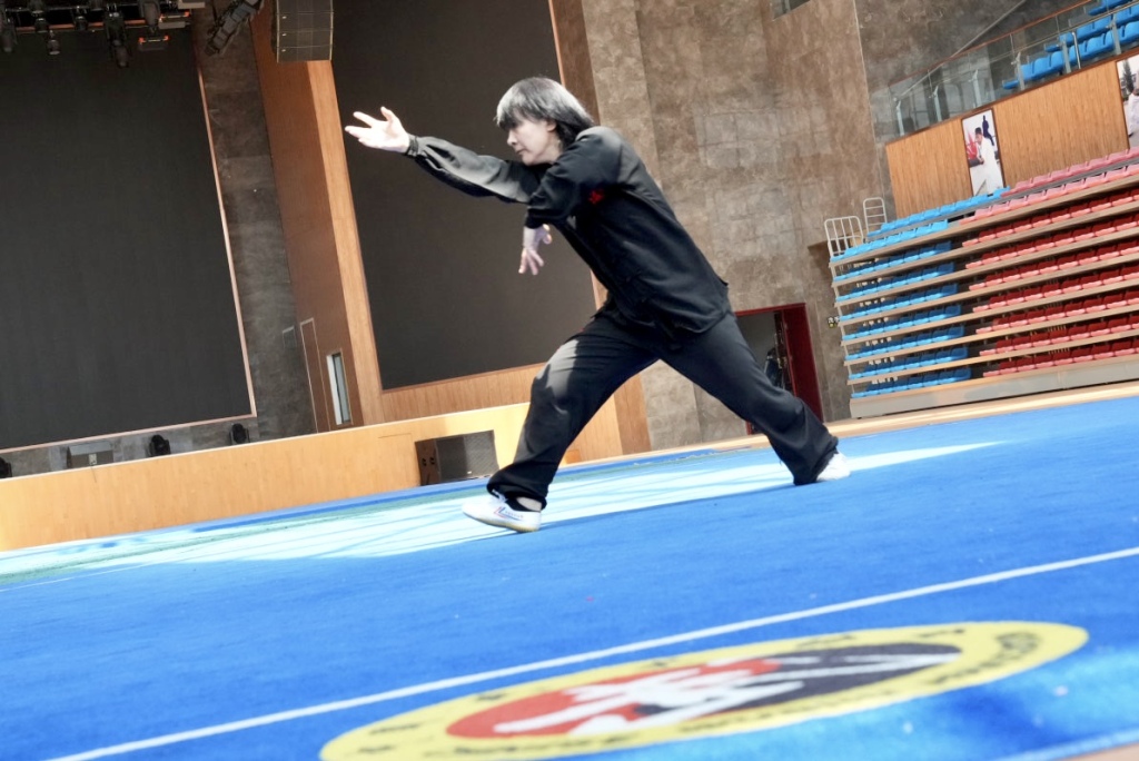5月13日,沧州孟村八极拳展演馆内,一名武者在表演八极拳。 澎湃新闻记者 王珏玮 图