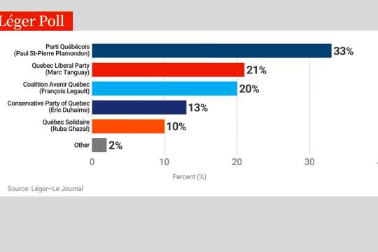 魁北克省执政的CAQ在民意调查中处于低迷状态,PQ领先,自由党获得支持
