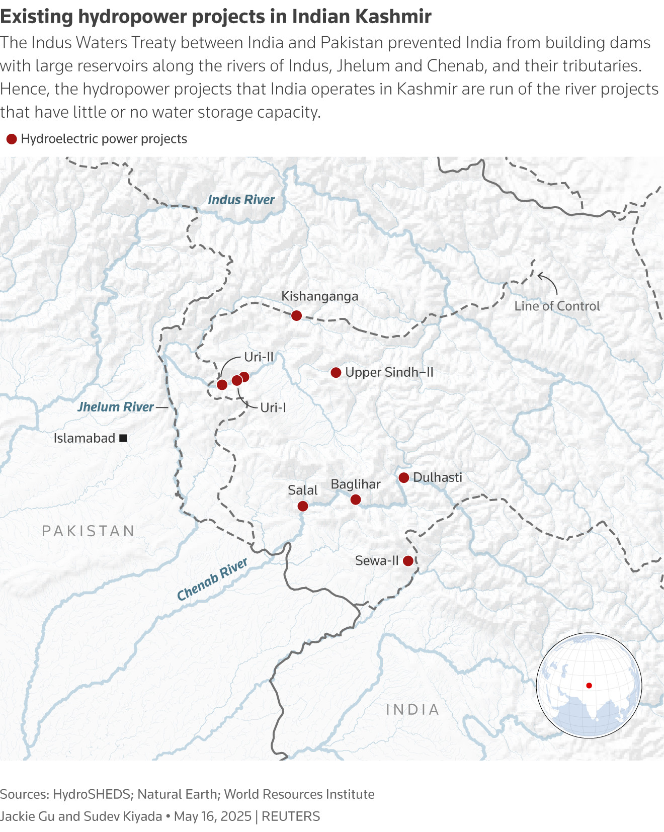 作为报复,印度中止了1960年《印度河水域条约》(Indus Waters Treaty)的参与。该条约是一项不可撤销的双边协议,管理着印度河及其支流的水资源共享。