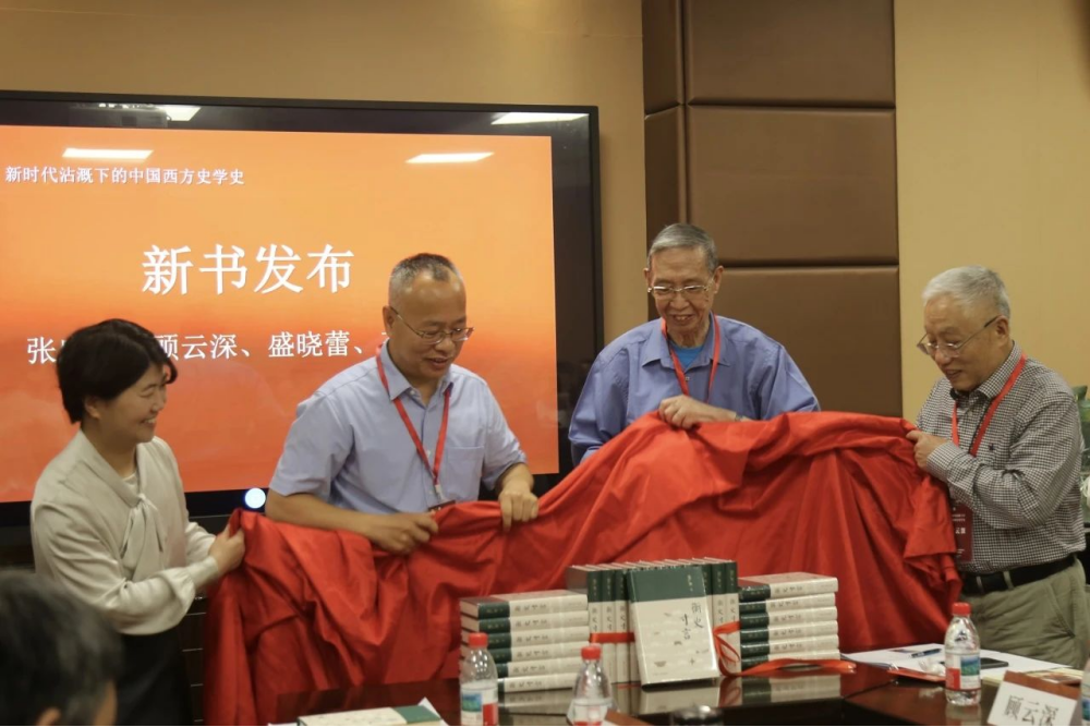 在热烈的掌声中,张广智、顾云深、盛晓蕾、王卫东共同为新书《衡史寸言》揭幕,也开启了随后的研讨环节。