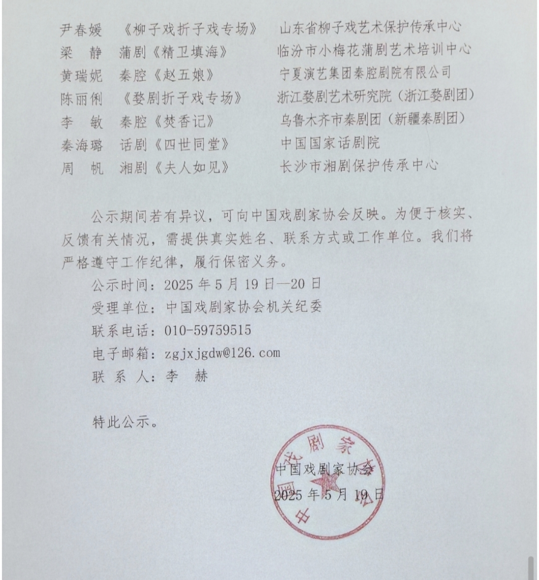 5月19日,本届中国戏剧梅花奖评选工作完成,共差额评选出15名获奖演员。终评结果已在中国剧协官网进行公示。