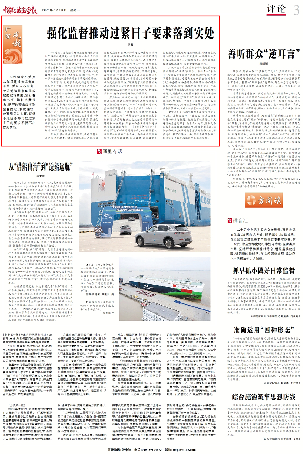 5月20日出版的《新华每日电讯》、《经济日报》、《中国纪检监察报》等主要央媒均刊发评论,拧紧纪律的螺丝,重在抓常抓长。作风建设贵在坚持,难在坚持,成也在坚持。