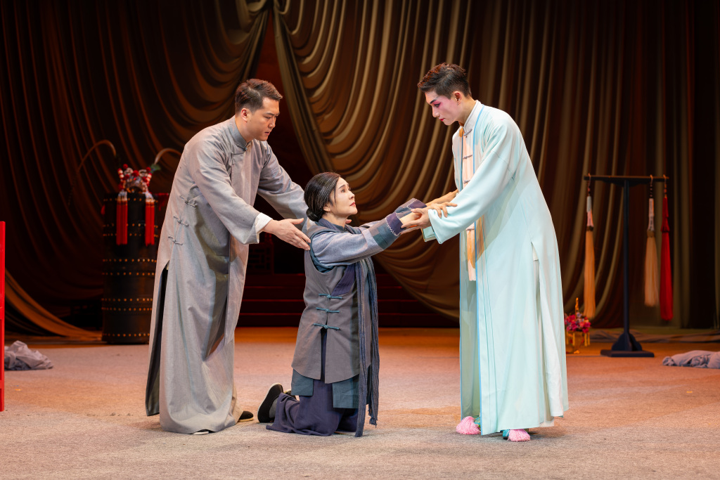闫锐:通过研读剧本,我们觉得王新贵的坏,是人不为己天诛地灭的“坏”,这个人物也是复杂的,他深谙底层社会的生存之道,善于察言观色。王新贵能进苏府当差做大管家,是莲生给他保荐的,当他发现了莲生和玉春有私情要出逃,出于对老爷苏宏基的效忠,为了保住自己的饭碗养家糊口,他不得不去告发。戏里他有句词儿,“十年的交情比不上一碗干饭。”他肯定不是一个道德高尚,为朋友两肋插刀的君子,但从他所处的位置,也有自己的合理性。刘宸这次虽然没有直接表现自己的戏功,行动坐卧走的那点尺寸,还是带出了些许京剧丑角的味道,把“小人乍富,狗穿皮裤”演绎得活灵活现。