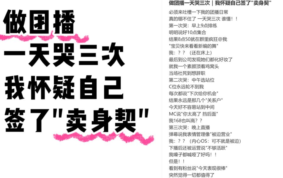 " 所以在没有稳定高额流水前,我们都格外珍惜上播机会,也会抓住一切机会拉票,以稳定留在团里。" 小毛说。