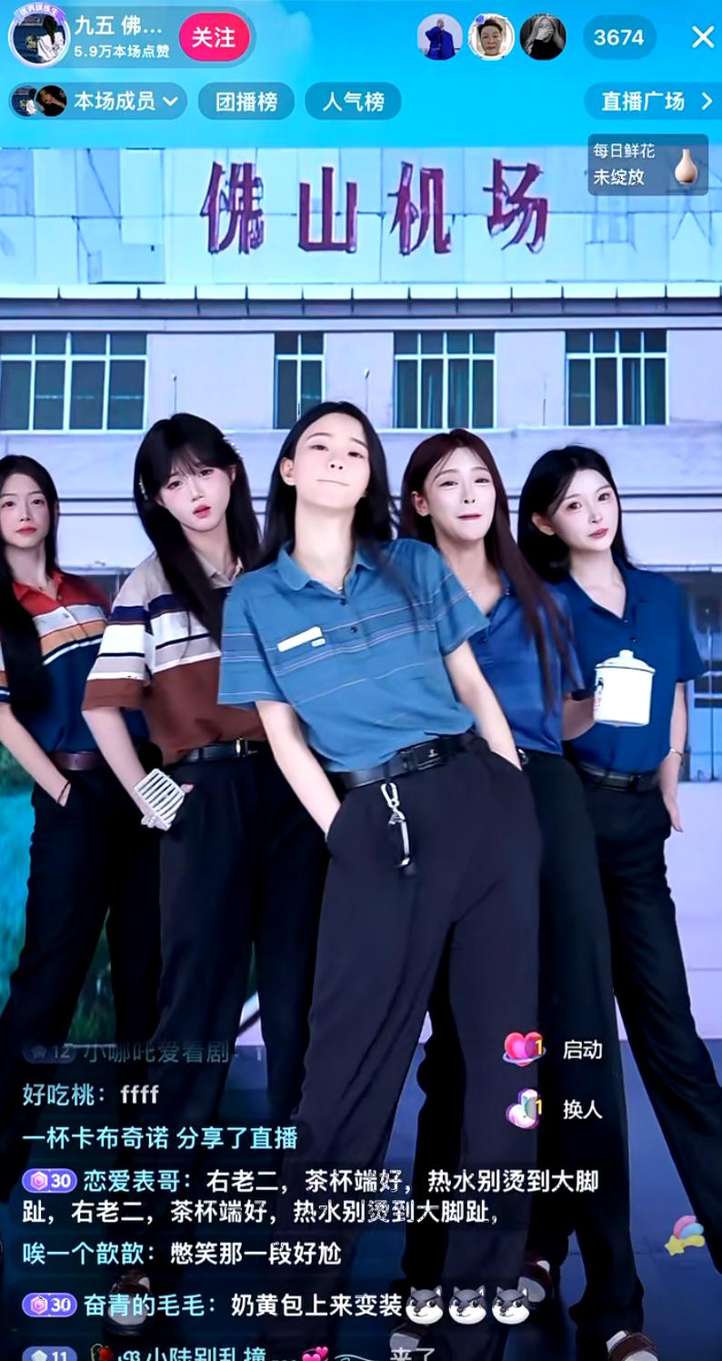 此外,与个播不同,团播一个团约 5-7 人,刚好是手机屏幕能容纳的规模,站在镜头前对比一目了然。