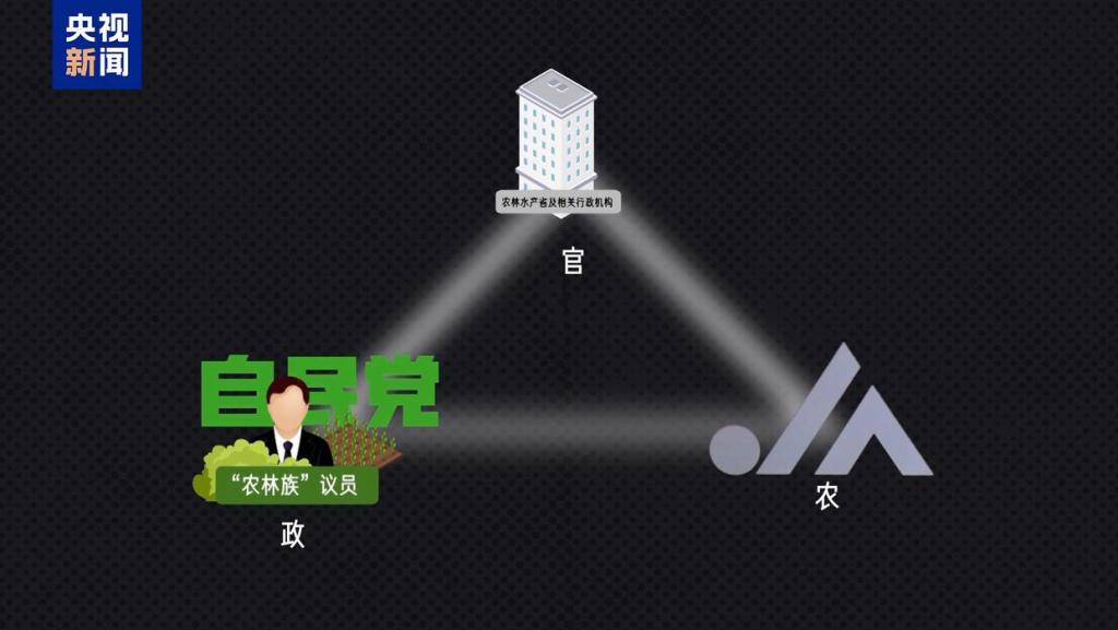 据《读卖新闻》报道,如今日本全国农业协同组合联合会,即“日本农协”左右着日本国会约 30% 的席位,在历次重大选举活动中,农协都会动员旗下农民向自民党贡献大量选票,而农协长期与自民党内“农林族”议员合作,影响相关立法及农林水产省的政策走向,形成一个“政 — 官 — 农”权力三角。