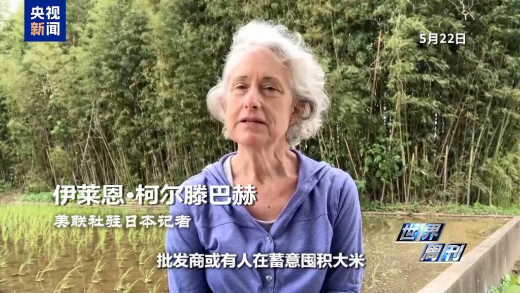 美联社驻日本记者 伊莱恩 · 柯尔滕巴赫:现在的怀疑是,批发商或有人在蓄意囤积大米,目的是哄抬价格,从中获取更高利润。