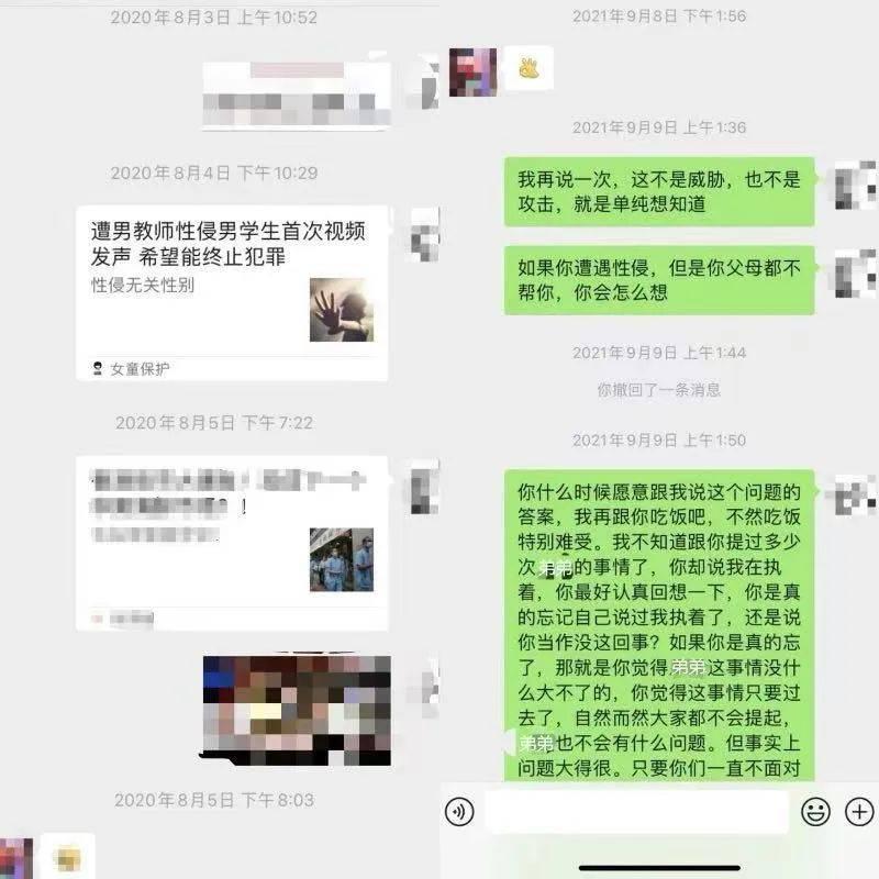 得知宋辰的遭遇后,宋海江不是没有变化。他第一次主动参加了儿子学校的家长会,有空也会接送他上下学。但宋欣觉得这些不够,她开始在大学里留意性科普相关讲座,带宋辰一起去听。她还辅修了心理学,学习有关心理创伤相关的知识。看到有关性侵的文章,比如韩国电影《熔炉》的影评,房思琪相关新闻,林肯公园主唱自杀的消息,她都会转发给父母,希望他们意识到宋辰的遭遇并不是简单的"玩玩而已"。她试图说服父母,要让宋辰接受专业的心理咨询。