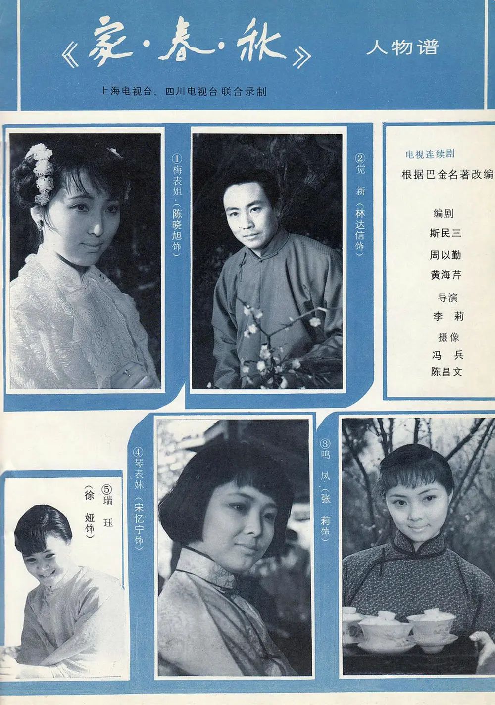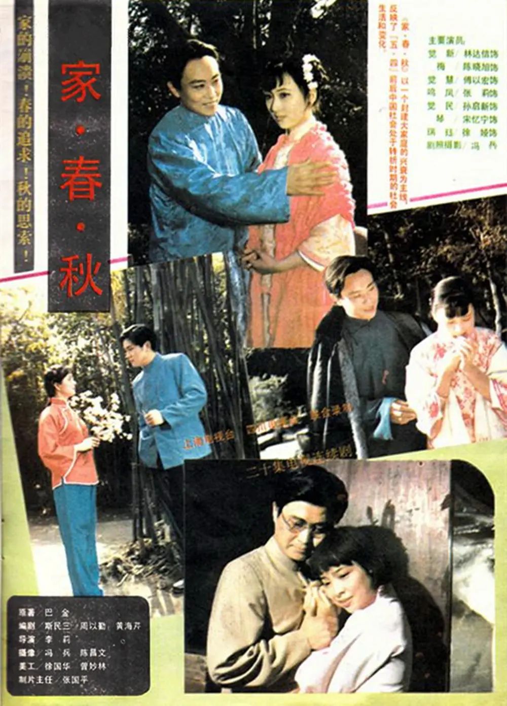 李莉:拍《家春秋》是上海电视台先提出来的,当时(台里)有一个拍摄长篇电视剧的想法,“激流三部曲”(《家》《春》《秋》)是巴金先生不朽的著作,我们就决定从这部戏开始。那个时候《家》已经有话剧和电影作品了,观众对《家》很熟悉,对《春》《秋》就了解得少。但我们拍的时候,不光是《家》,要把《春》《秋》连在一起拍。