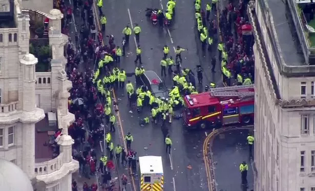 默西塞德郡警方表示,事发当天下午6点刚过,事发地点是沃特街,当时利物浦正与球迷一起庆祝英超冠军。人们看到一辆深灰色的载客汽车穿过人群,一边不停地鸣笛,一边撞向数十名球迷。