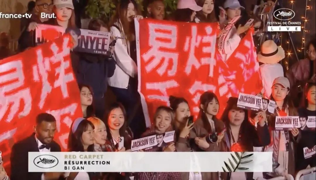甚至,在戛纳电影节的红毯直播中,现场卖力搞应援的易烊千玺粉丝还得到了半分钟之久的特写镜头——看样子,连戛纳官方都感受到了来自东方的小小震撼。