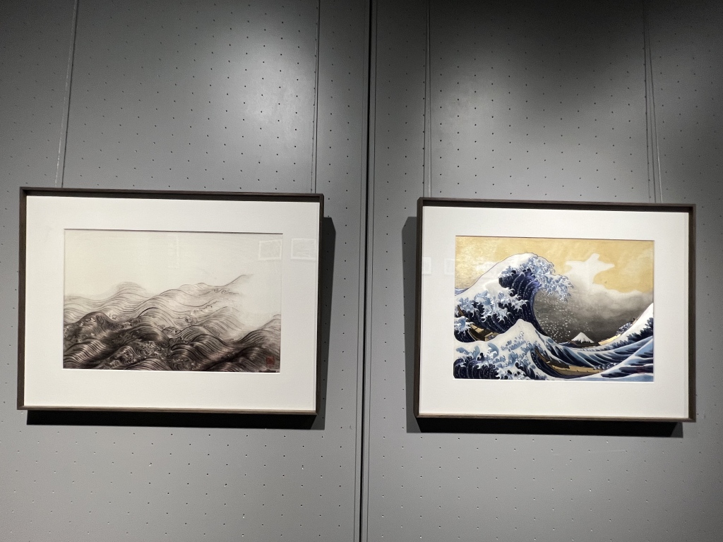 “绣心探索” 板块则充分体现了周雪萍突破传统的勇气。刺绣不再局限于传统题材,而是大胆表达油画、自然等多元主题。在“东西之交”中,周雪萍以刺绣为媒,搭建起东西方艺术对话的桥梁。她解构克林姆特《吻》中浓烈的情感张力,重构中世纪油画静物厚重的光影,以丝线呼应古今,使南宋马远《水图》的水墨神韵与葛饰北斋《神奈川冲浪里》的磅礴气势对话;“渐变游戏”则是周雪萍对艺术表达边界的极致探索。以《星空》为例,她将传统技法与现代空间美学相融合,构建出深邃空灵的苍穹意象,不仅呼应古人“天圆地方”的宇宙哲思,更通过虚实相生的视觉语言,诠释出“空境之美”,让有限的刺绣空间承载无限的精神想象;“人与自然”专题,承载着艺术家对生命与生态的深沉思考。从奔腾的骏马到濒危的雪豹,从斑斓的孔雀到威严的东北虎,每一针都饱含对万物生灵的敬畏。