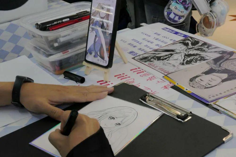 画师库里在谷子集市里画了不少动漫角色的手绘。(图 / 张文曦)