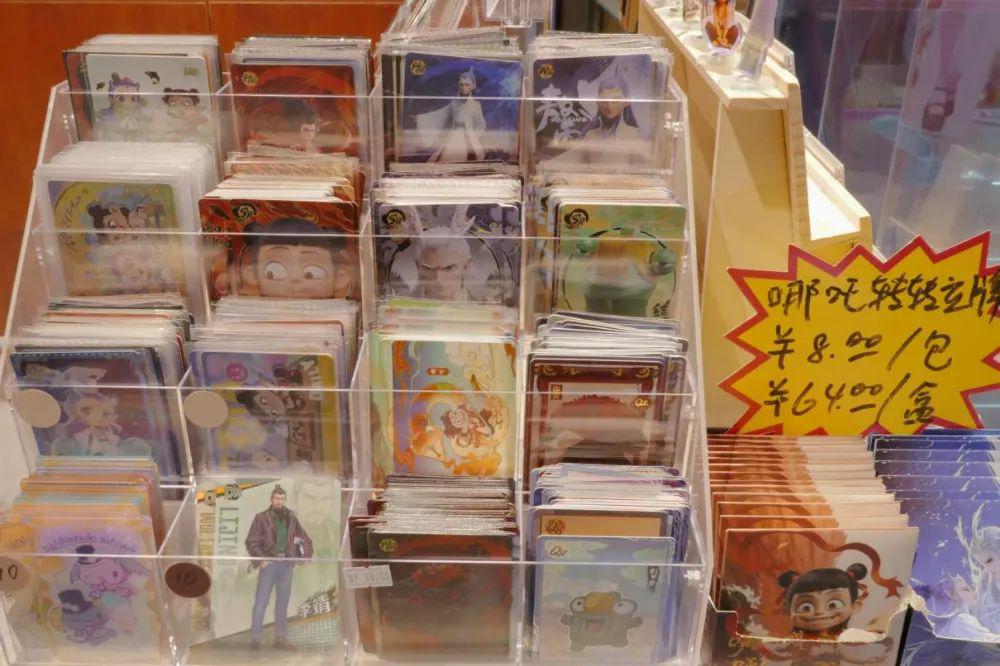 她算了笔账,每个月铺租加上电费三千多元,有时销售额刚好够交铺租和电费。幸运的是,她的店被电影《哪吒》" 救活 " 了一段时间。电影上映之后,突然多了很多人来买卡牌,一张电影稀有人物的贵价卡牌能卖到 180 元。那段时间,光是这部分收入就能撑起月销售额中的大头。只是随着时间推移,热度消退,买家不像热映时那么多了。