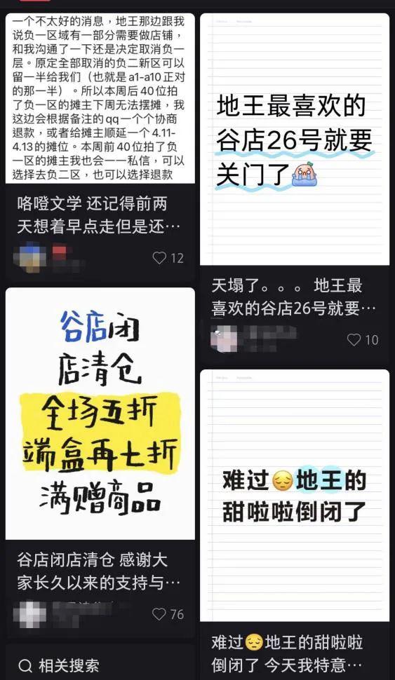 一些地王广场的谷子店陆续倒闭。(图 / 社交平台截图)