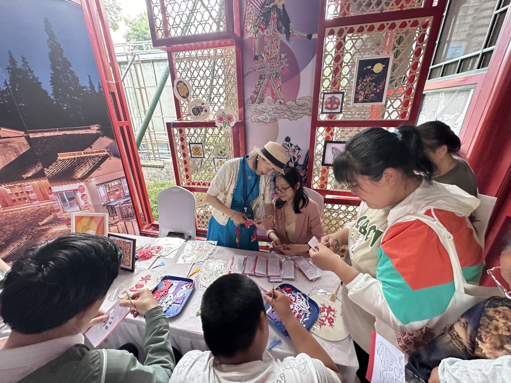此外,虹口区非遗剪纸艺术家史萍,将铸牢中华民族共同体意识融入传统剪纸技艺,与现场游客共同裁剪出栩栩如生的艺术品,受到小朋友的喜爱。