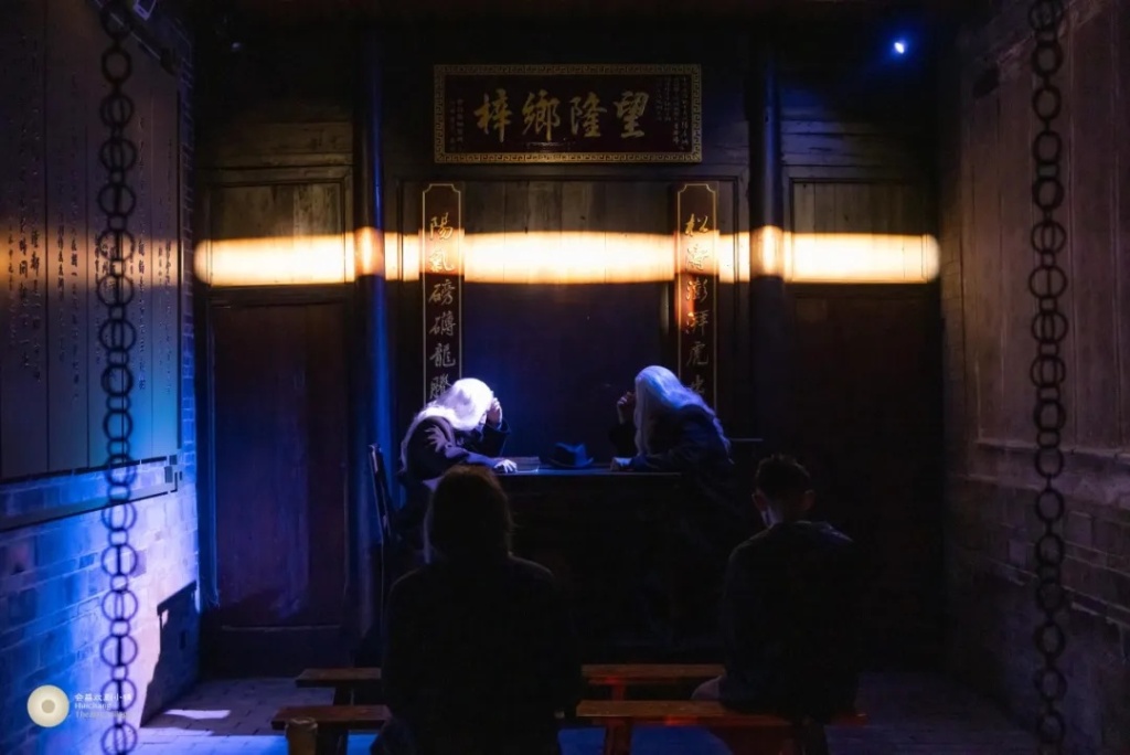 会昌戏剧季003中,最被关注的作品是一场仅能容纳32人的《贝克特在赖家老屋》,60多分钟的戏剧中,赖声川用四出戏、五个场景串联起贝克特一生的作品。演出地点是赖声川的祖宅——赖家老屋,这里的墙上是一张张黑白老照片,宅内的砖瓦牌匾记录着百年来赖家的故事,而在宅中上演的,是西方荒诞派戏剧代表之作,其中蕴藏着讽刺、黑色幽默、苦难与希望。